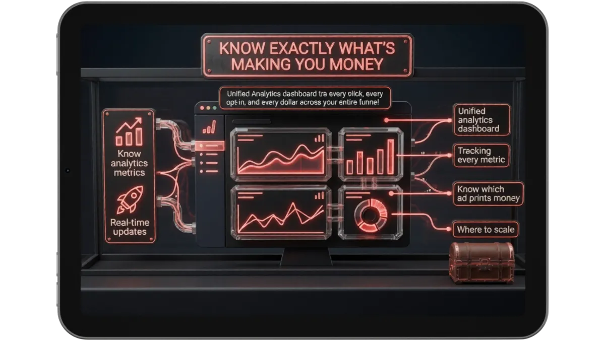 a unified analytics dashboard tracking every click, every opt-in, and every dollar across your entire funnel — in real time.